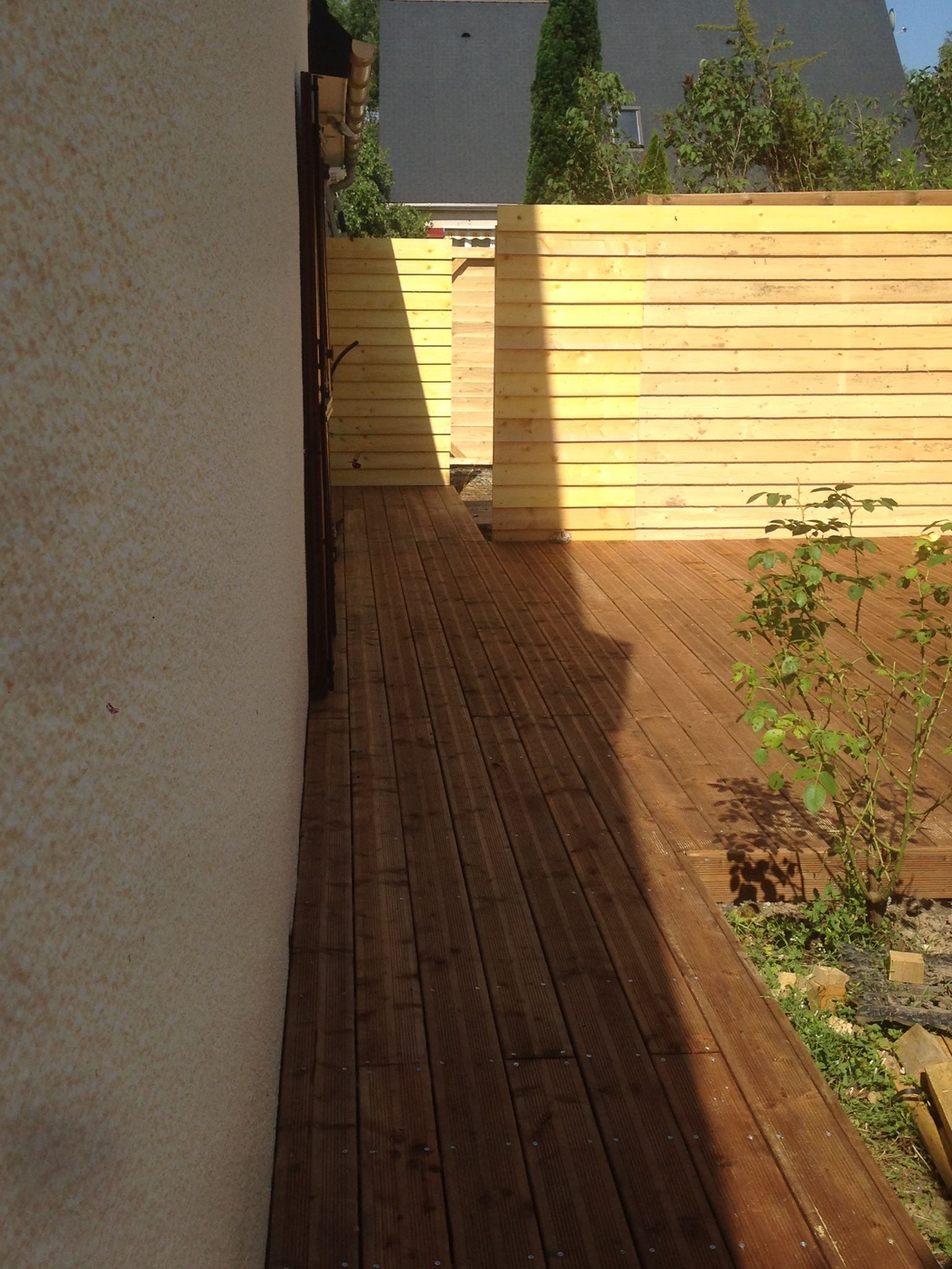 Nous soignons les raccords, la planéité, les jeux de dilatation et l’écoulement afin d’éviter les pièges classiques (eau stagnante, chant mal protégé, dénivelé inconfortable). Résultat : une terrasse stable, sûre et agréable.